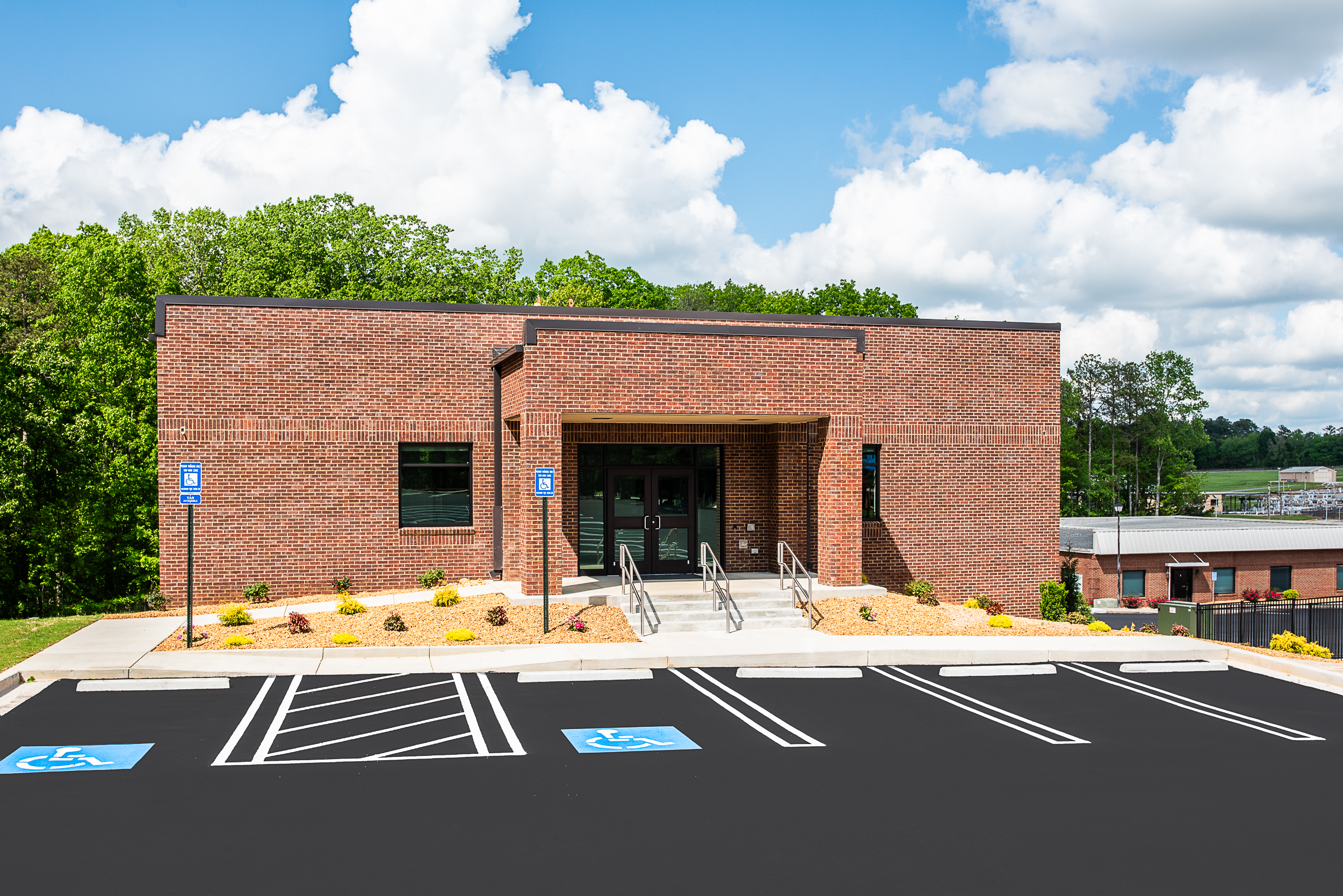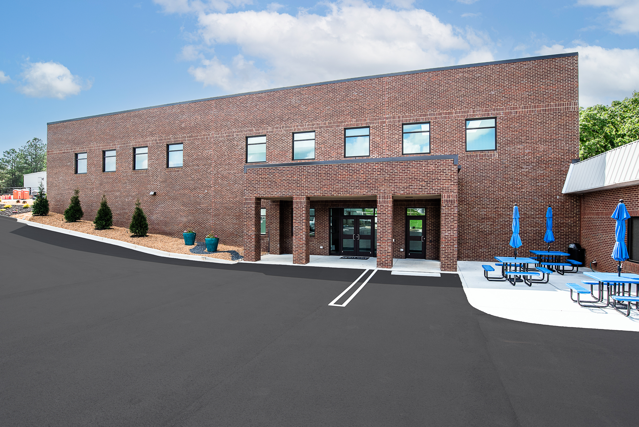 RKR constructed a 14,700-square-foot, two-story Class A office building space for Aubrey Silvey on an occupied site. The facility features modern offices, conference rooms, and break rooms. Special care was taken to source brick that closely matched the older existing buildings on site. This allowed the new construction to blend seamlessly and fit within the existing space.