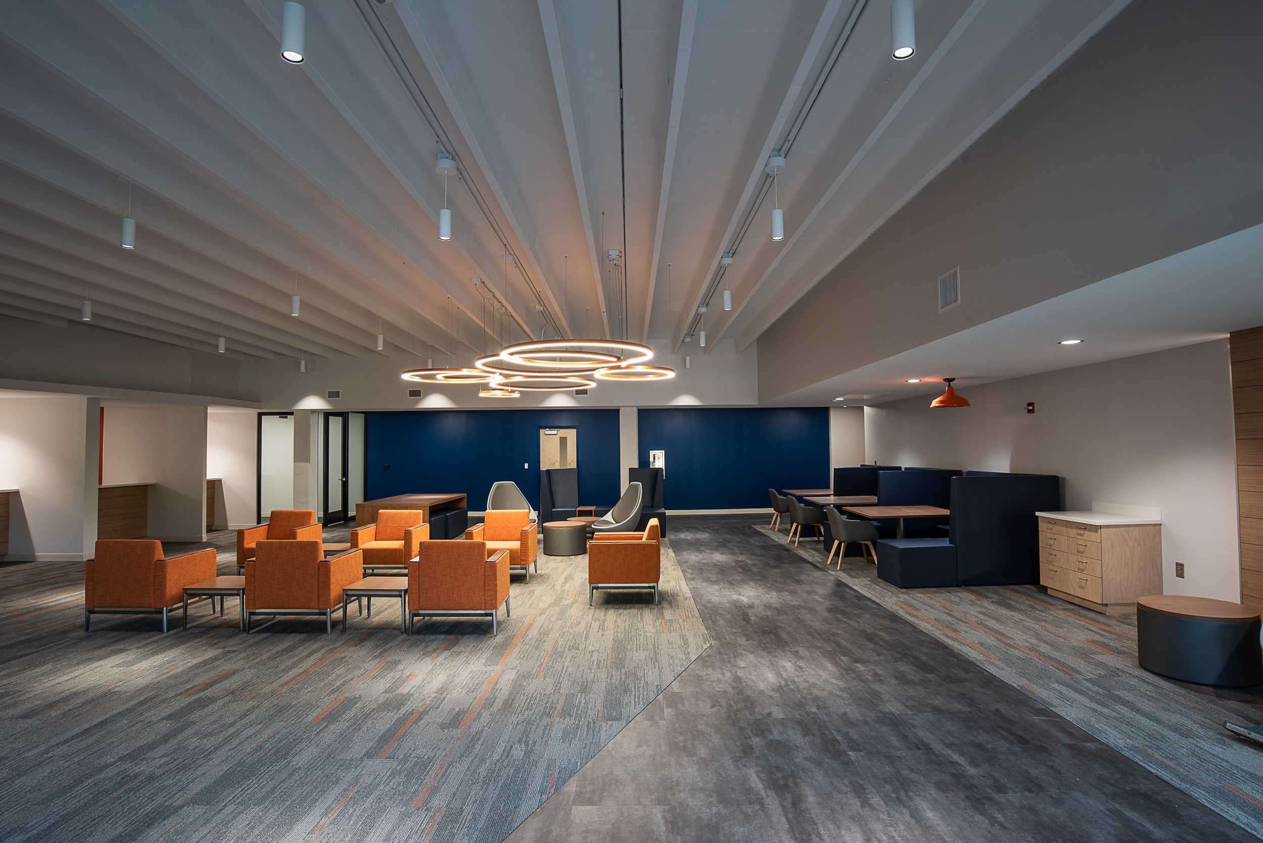 At Georgia Highlands College’s Floyd Campus, RKR demolished the existing exterior canopy and constructed a new replacement canopy to enhance the building’s entrance. The project also included an interior build-out of new offices and a student help desk area, along with the installation of a new sprinkler system.